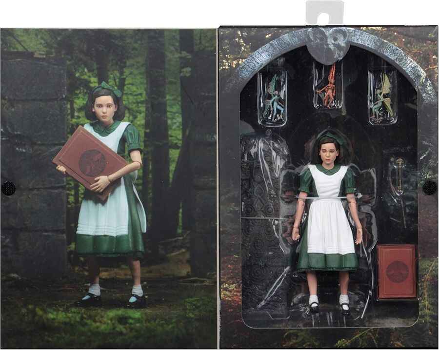 NECA new collaboration with renowned movie director Guillermo Del Toro brings select characters from Del toro’s films to life in premium action figure format with deluxe added elements. From the dark fantasy film pan’s labyrinth, the young ofelia stands approximately 5” tall, is fully articulated and comes with detailed accessories from the movie, including three different fairies, key, book, and a small pillar with removable eye. Collectible deluxe window box packaging.