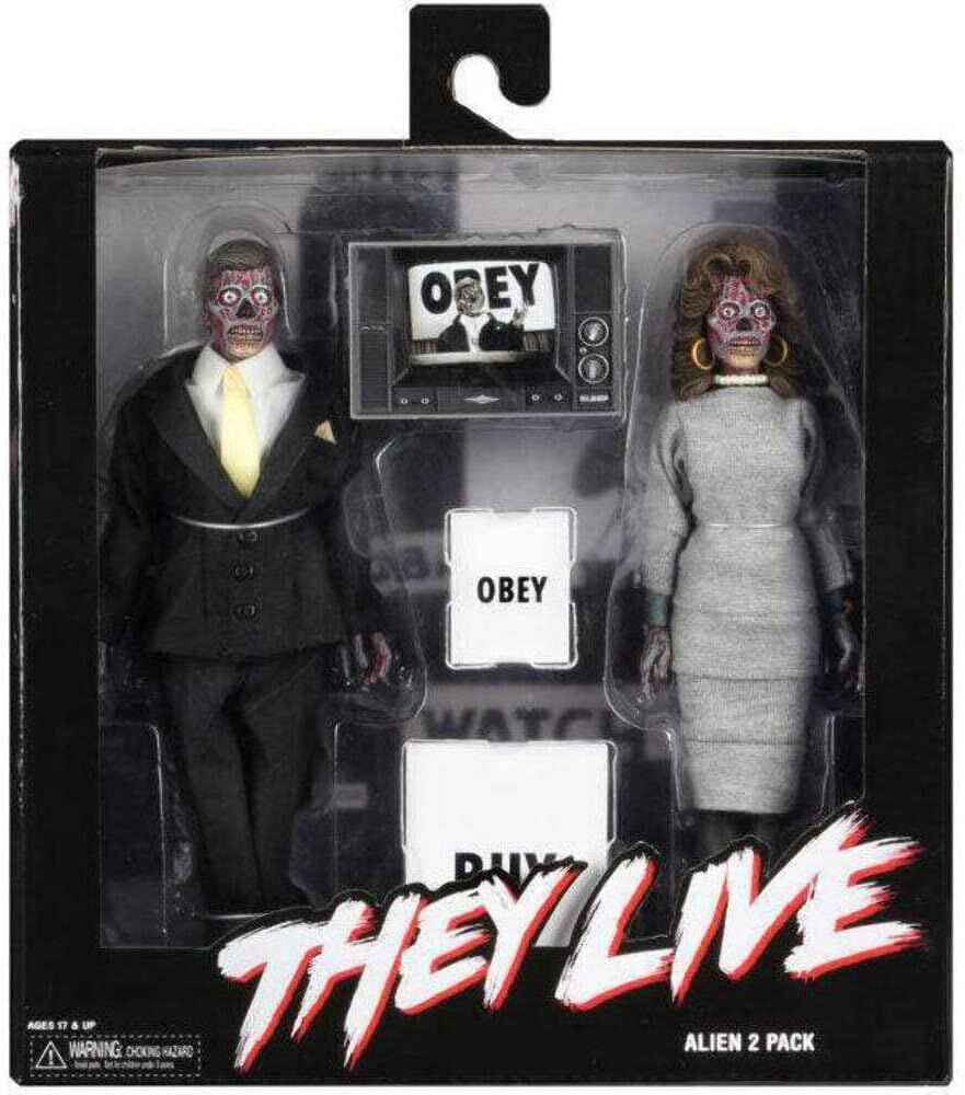 Consume! Obey! A truly underrated movie of the ‘80s, They Live had a fun sci-fi premise hiding a deeper social commentary about the manipulation of the masses via advertising. Horror master John Carpenter directed the film about a ruling class of aliens hiding in plain sight and controlling the people via subliminal signals in media and commercials. For the first time ever in action figure form, see the aliens as they really are without the aid of technical sunglasses in this clothed action figure set, featuring a male and female alien. Both figures come with the wristwatches that transport them to the alien command center, as well as television, magazine, newspaper and necklace accessories. Window box packaging