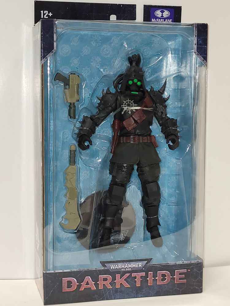 • Figure is showcased in Warhammer 40,000: Darktide themed window box packaging